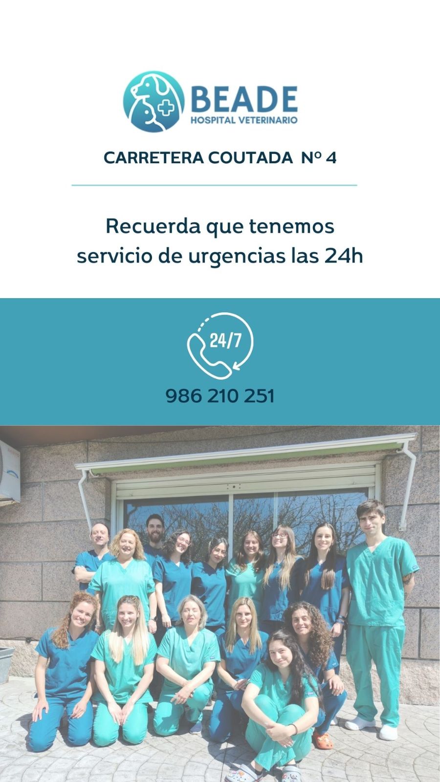 Hospital Veterinario Beade, ubicado en Estrada Coutada, 4, 36312 Vigo, Pontevedra, España, es un consultorio veterinario que ofrece atención integral para mascotas. El consultorio es conocido por su personal competente, amable y cariñoso que proporciona un alto nivel de servicio tanto para las mascotas como para sus Clientes. El equipo es fluido en inglés y español, lo que garantiza una comunicación clara para los dueños de mascotas no hablantes de español.